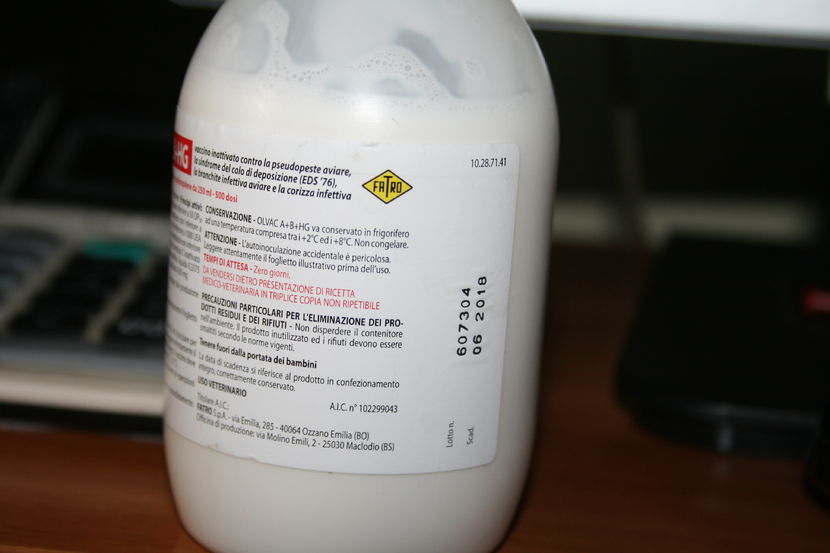 Vaccinul OLVAC A+B+HG contra: PSEUDOPESTEI AVIARE, BRONSHITA INFECTIOASA, CORIZA INFECTIOASA SI SINDROMUL CADERII OUATULUI... LE VOI FACE UN TRATAMENT PREVENTIV CU TYLAN 0,5 GR / 1 LITRU APA 3 ZILE + UN COMPLEX DE VITAMINE BUVABILE (PROMOTOR L), APOI O DEPARAZITARE INTERNA...